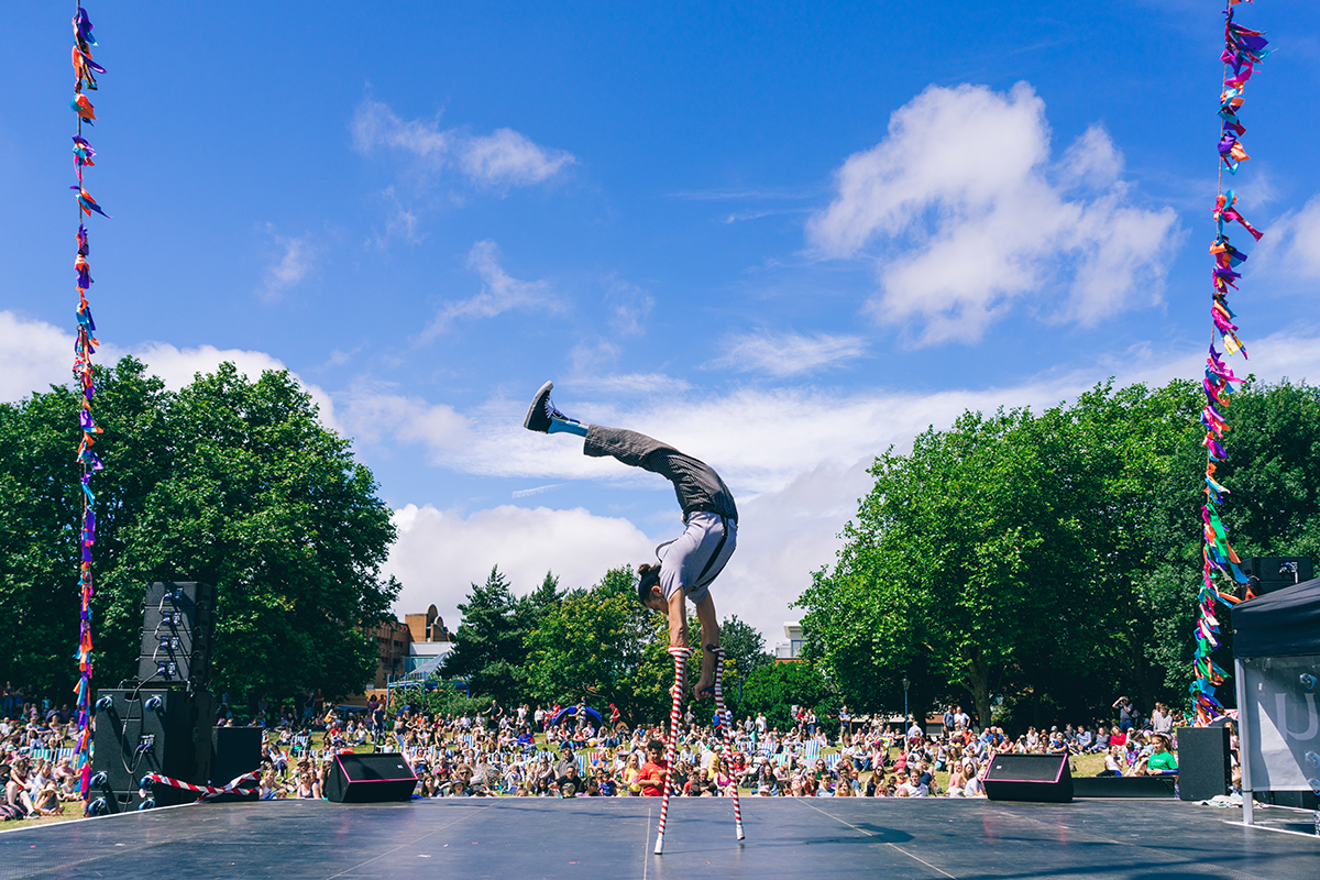 Cirque Bijou’s stage offers a diverse programme of circus, street theatre and variety performance, with world-class aerial, acrobatic and juggling performances, creative comedy, offbeat talent and plenty of chances to join in the fun.