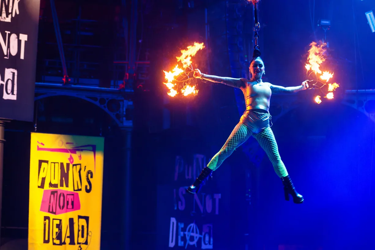 Our finale was an anarchic venue takeover with a stage show featuring some of the craziest sideshow performers around. We had everything from sword swallowing and a bed of nails to fire breathing and hair hanging. It culminated with a spectacular, show stopping aerial chains performance high up in the rafters of the Roundhouse.