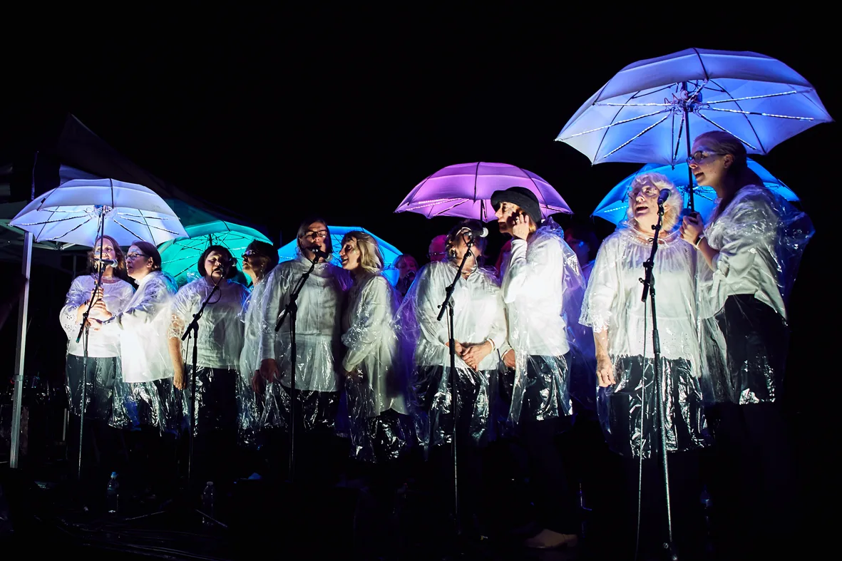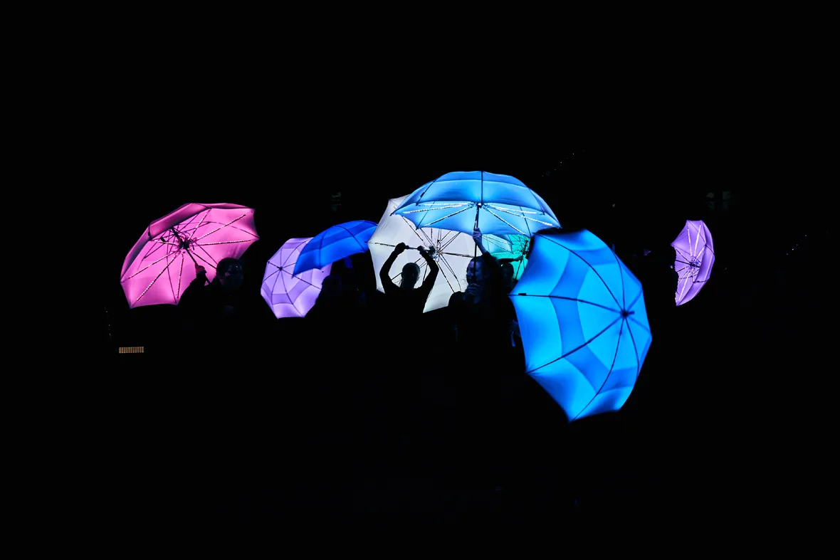 Live music was played by Diana Yukawa, Michael Fergie, and a fantastic local choir sang as part of the finale. We also had 25 young local dancers volunteer to dance with our LED Umbrellas as part of the spectacle.