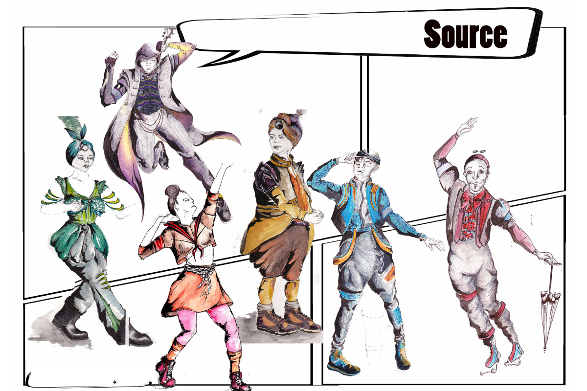 Below are a few examples of these, beautifully illustrated by Arts University Bournemouth students who designed and made all the costumes.