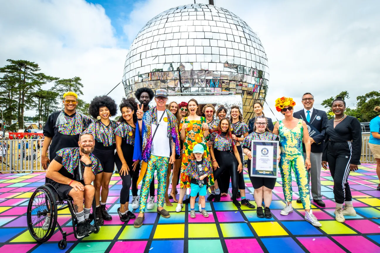 Our finale show wasn’t the only highlight for us at Bestival this year, we also became WORLD RECORD HOLDERS! Previous disco-dance champion Claire Hodgson led the festival in the World Record attempt for the largest disco dance – and we did it! Over 300 festival goers came together on the Saturday morning, with pre-learned choreography to ‘We Are Family’.