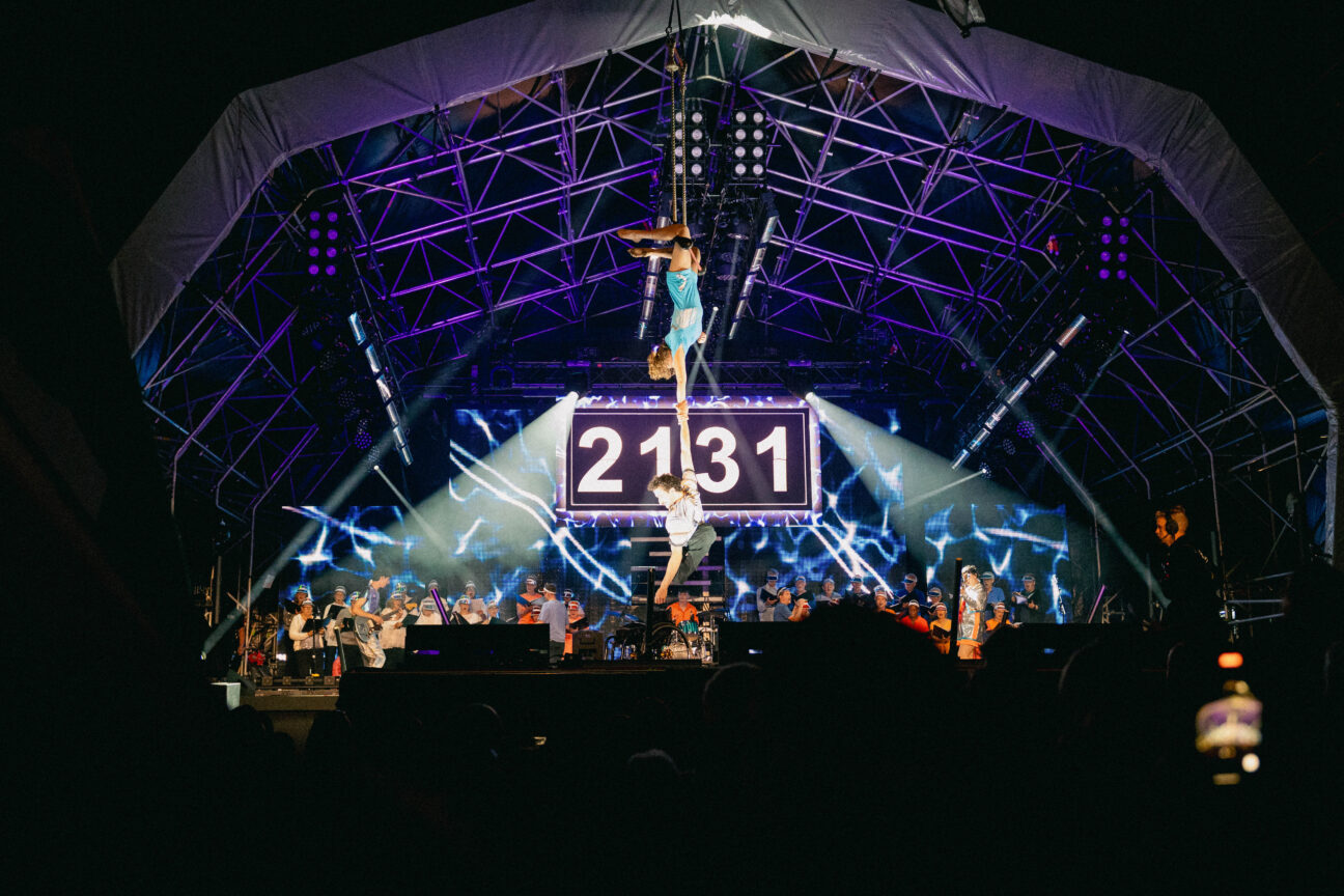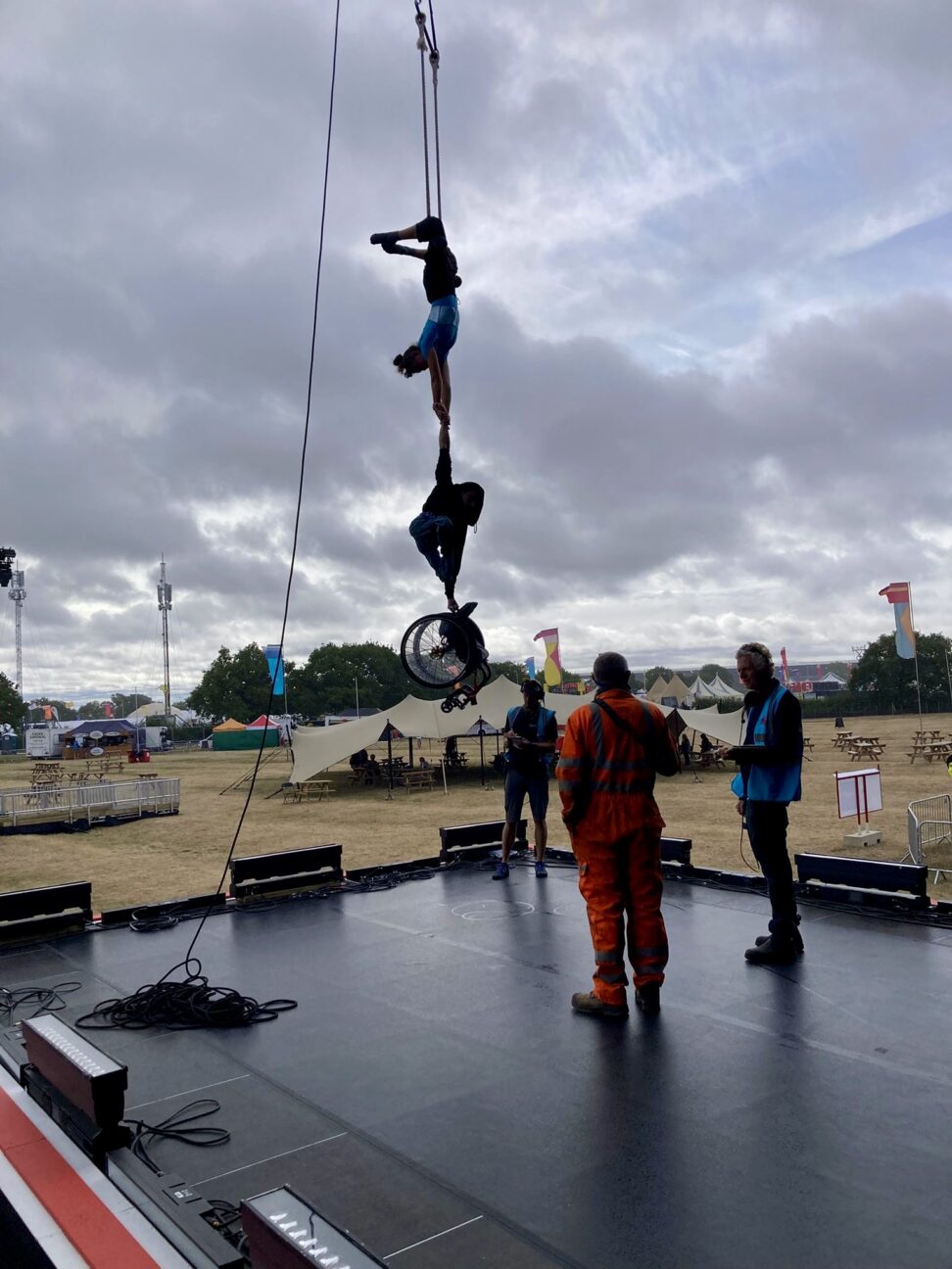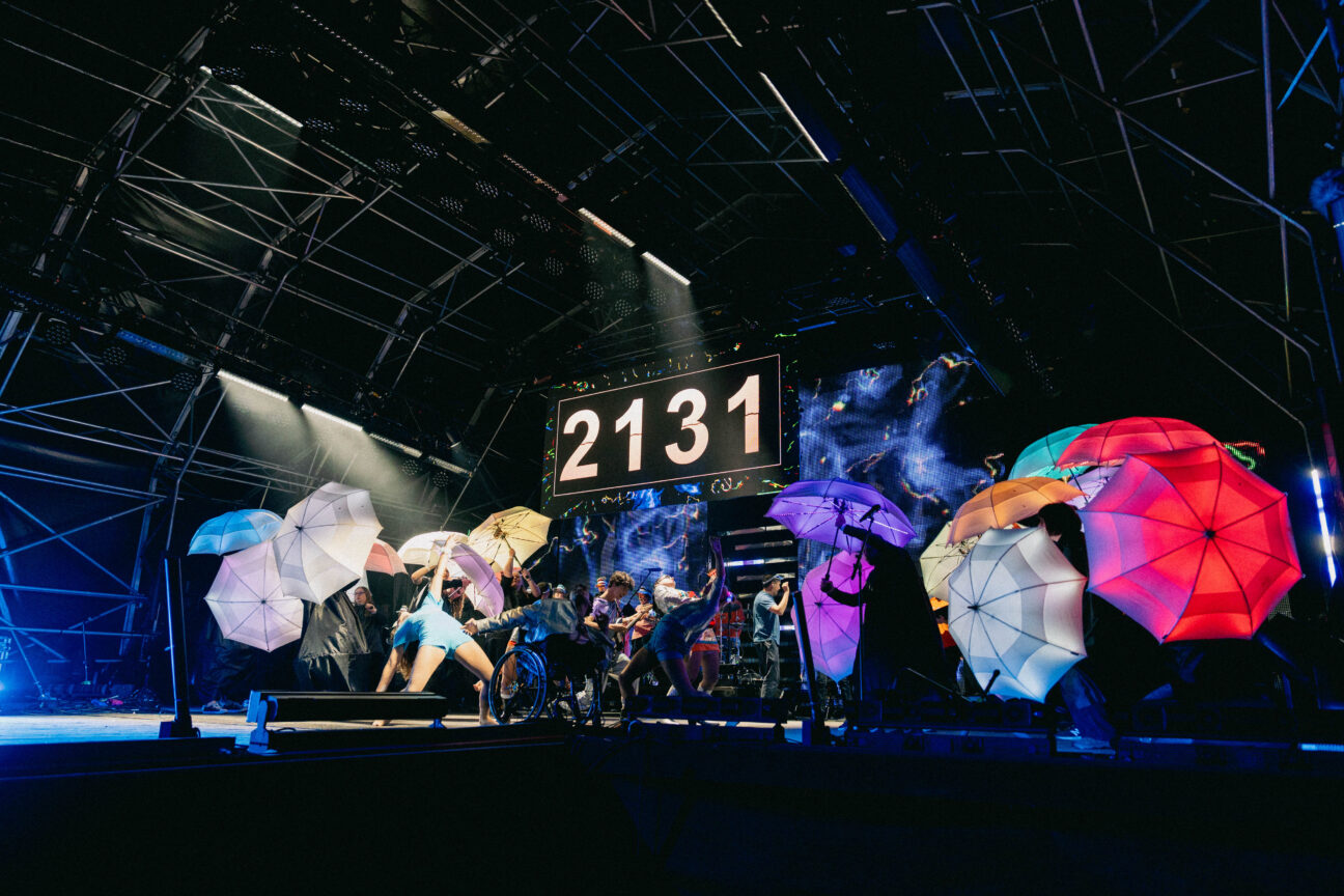 We were invited to create a finale stage performance for the Satruday night of the 2025 National Eisteddfod in Wrexham. The show was a celebration of inclusion, involving aerial performances from Extraordinary Bodies artists Tilly Lee Kronick and Jonny Leitch, as well as many local Welsh artists. The show was inspired by the novel Wythnos yng Nghymru Fydd by Wrecsam author Islwyn Ffowc Ellis and the Well-being of Future Generations Act.