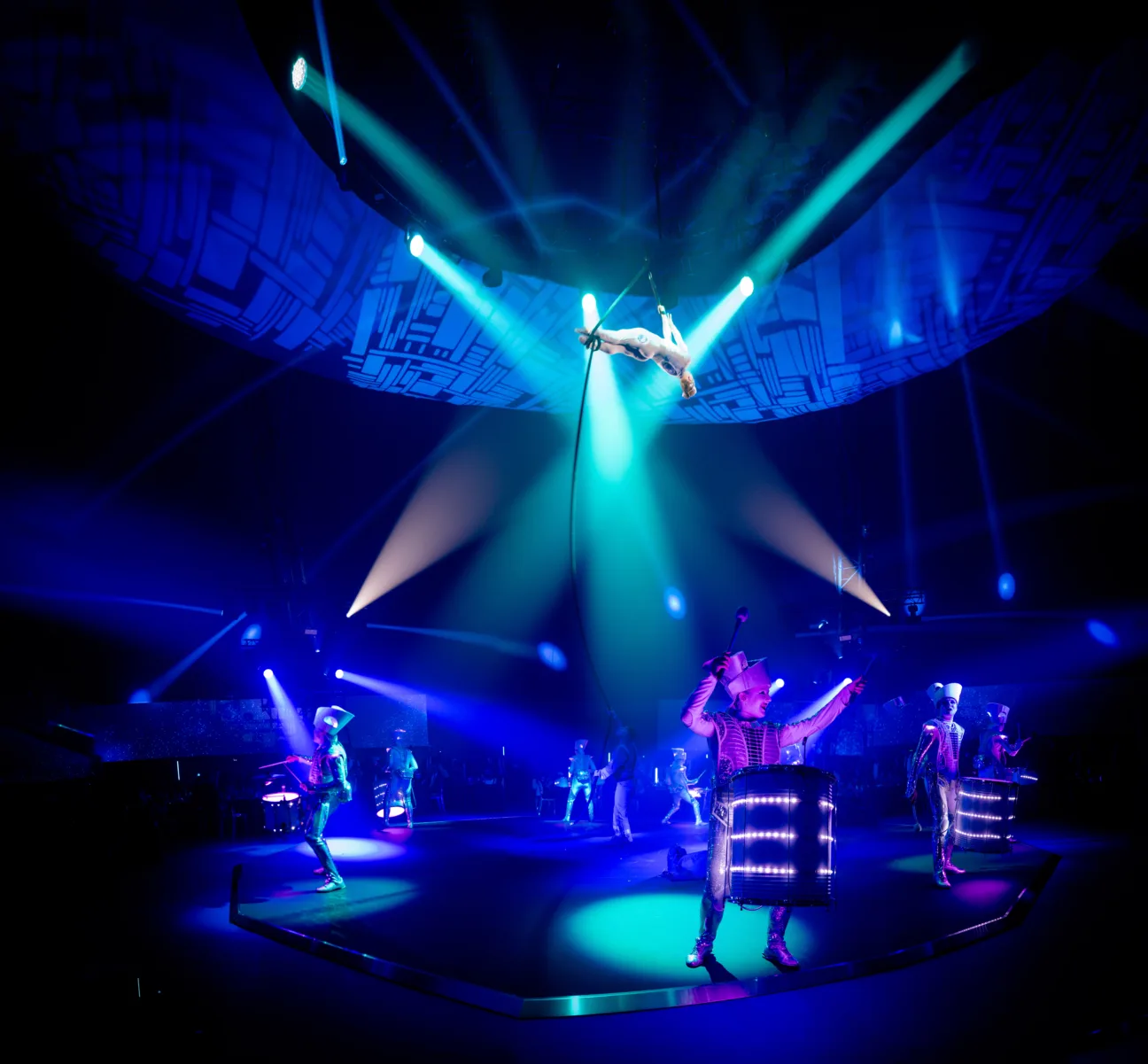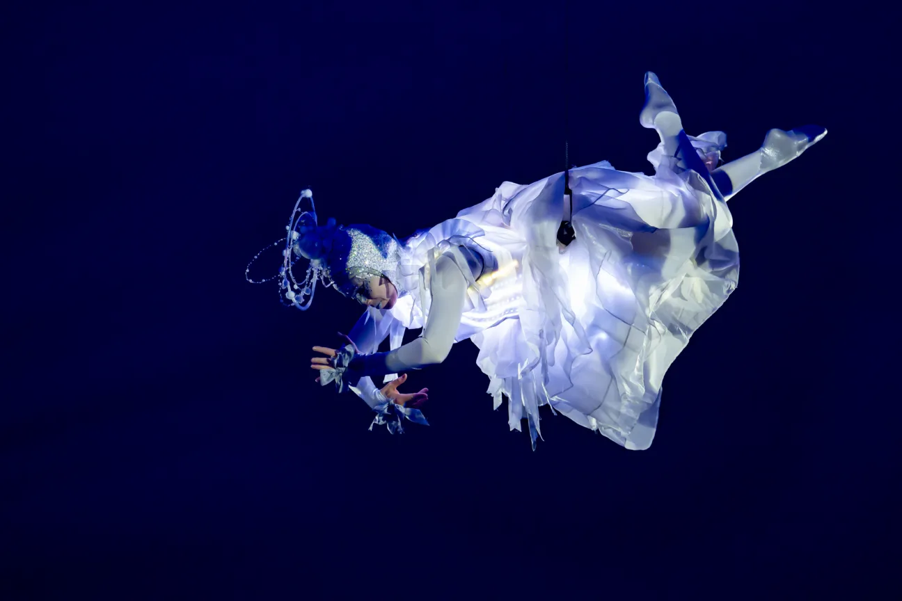 It was a joy to work in the iconic Chapiteau of Monaco, a permanent big top space by the water. It is, of course, the perfect space for performing circus. We had room to play and technology at our fingertips. We also had the creative ambitions of Sleek’s Event Director Simon Tapping. Together, we created our four-part journey to the moon. A rocket launch, a space walk, a space goddess and finally a celebratory ‘Space Charivari’ to get everyone dancing.